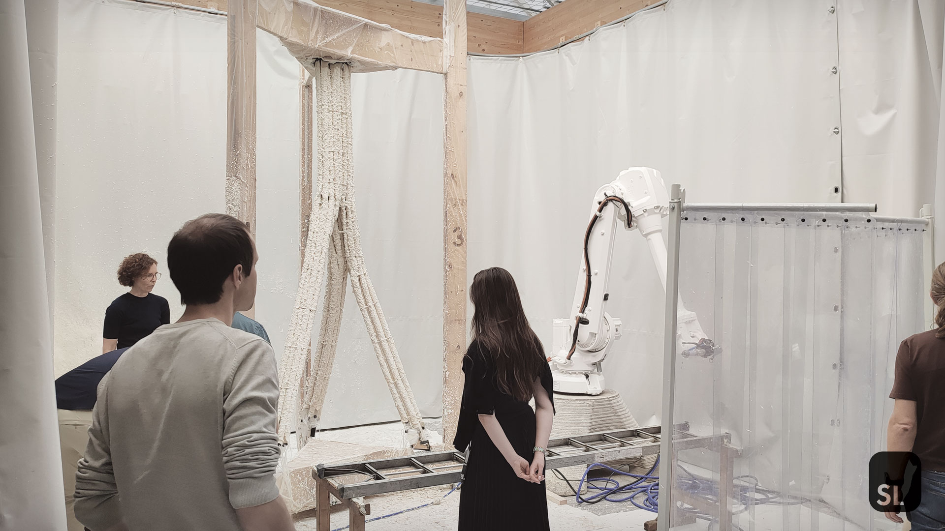 #76 Exhibition: Knot Production for Milica Tomic. Project Credits: Arist: Milica Tomic. Design, Ceramic 3D printing, and mycelium cultivation: Julian Jauk and Hana Vašatko. Algorithmic overall planning and construction: Richard Dank. Design and 3D model: Leon Scheufler. Support: Salim M’Barki and Jasmin Monschein. Metal processing: Locksmith Golser 2025-06-14 Opening Event at Berlin Biennale 2025 © IAM – TUGraz 2025