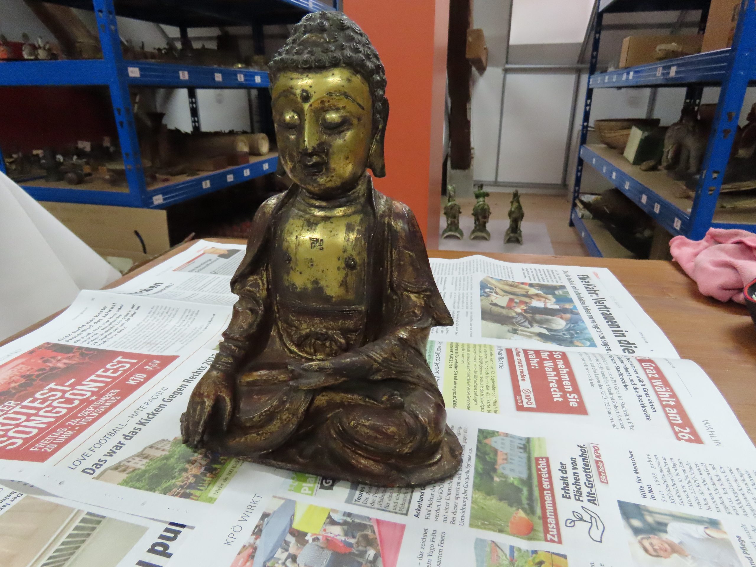 Same Buddha statue in the archive of the Slovene Ethnographic Museum with other parts of the collection in the background, Photograph © Gerald Kozicz, 2022