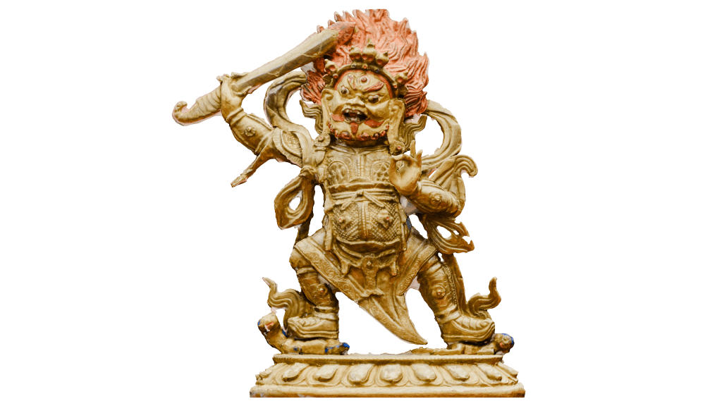 Disappeared from the Collection and Brought Back Text by Gerald Kozicz One of the archival, unfortunately not dated photographs from the Photographic Archive of the SEM shows the Buddhist sculptures from the collection on the dresser in front of the mirror. Vajrabhairava is in the central position but quite in the background. The low angle … Continue reading 14_Begtse – God of War